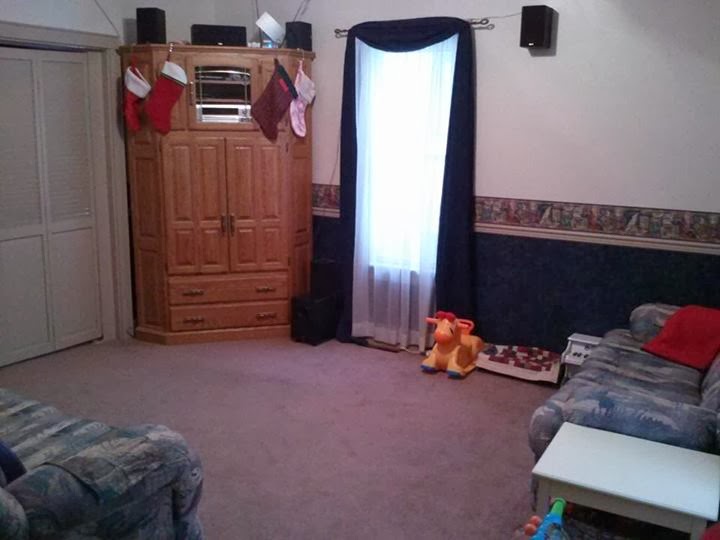 Well it's officially been two months since our big move, and it's been a process, with lots of decisions and finalizing, but we made it! WE MOVED!!! Yay, we are so happy here, it's like a kid on Christmas, new things, and new experiences. Whenever I am gone all day, I just want to go back home to my "new" house! I love it. The decorating and planning for each room is going slowly, but the wheels are turning and I am ever excited to have years to get it all done. I am so caught up in this new house that I haven't had much time for anything else. Thanksgiving flew by, and our first Christmas in this house is right around the corner! I'll be writing our Christmas letter on here again this year for anyone who won't get one mailed to them. So since the move, not too much has changed, Kyron is in school and loves it. We found out that one of his friends from school lives kiddy corner from our backyard so they play together a lot. We've gone over and had a fire and it's just been great getting to know some of the neighbors. We feel this whole process has been so amazing and it just keeps getting better. I am so disorganized in everything with the holidays I feel I will never get everything done. I am always saying I need to get on here more and share, but I feel like I don't have time. I don't take pictures like I used to either, they are mostly all on my phone and posted to facebook, but I want to be better at that too. So hopefully come the new year I'll have more everyday posts with pictures of the kids and what we've been up to. With being Sarin's first year walking and being about to play in the snow we'll have lots of fun with that! It's getting to be quite cold out and this is definitely not my favorite season, but I am thankful for my coffee bar and Keurig I got last year for Christmas:) Here are some pictures of our new house!